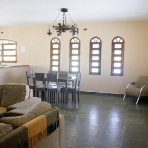 E a diversão não para por aí! Você terá à disposição uma cozinha totalmente equipada, churrasqueira exclusiva, TV, ventilador de teto, e uma área de lazer completa com piscina e banheiros masculino e feminino. Ah, e não se esqueça do nosso salão de festas com churrasqueira e forno a lenha – perfeito para celebrar momentos especiais com aqueles que ama.